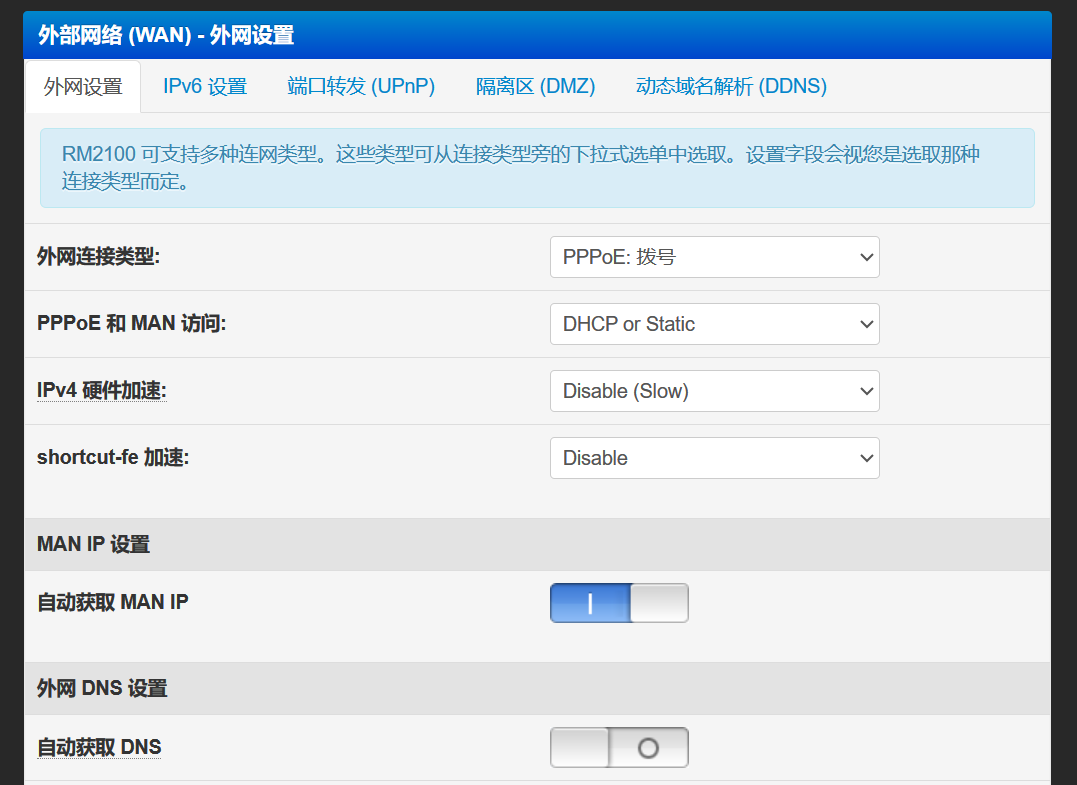 自动获取 DNS 服务器选项如果不关闭,那么会导致域名解析时,DNS 请求没有被转发给 mosdns,而是被路由器从 WAN 口获取的 DNS 服务器解析了,从而客户端没有获取到 FakeIP,而是获取了可能被污染 RealIP。