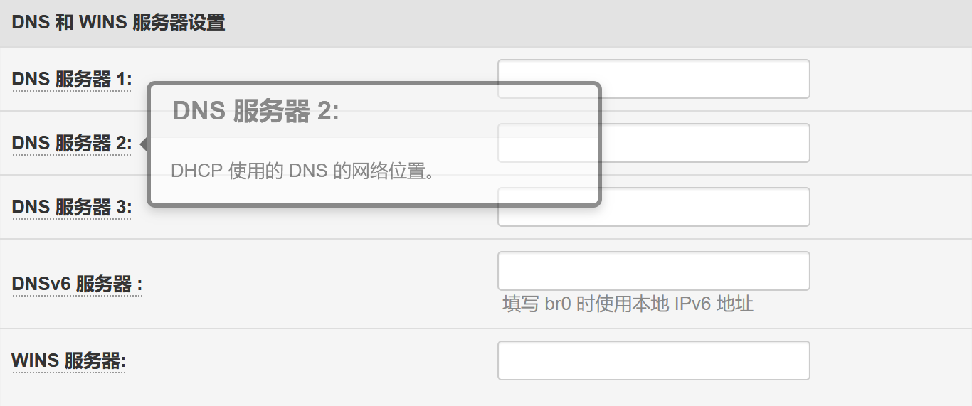 LAN 口中,DHCP 服务器 -> IPv6 设置,取消勾选 本地 IPv6 DNS 服务器,如下图所示: